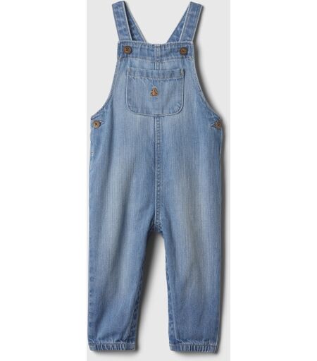 GAP KIDS, Salopette In Cotone Bio Con Ricamo Orsetto, Unisex, Denim, Taglia: 18-24M/79-84