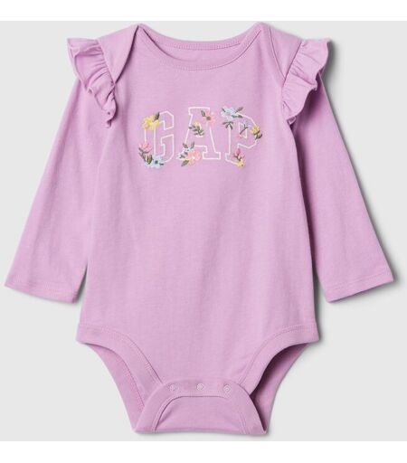 GAP KIDS, Body In Cotone Con Rouches E Ricamo Logo, Unisex, Viola, Taglia: 0-3M/46-58