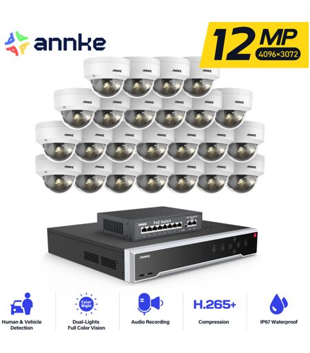 ANNKE 12MP poe Kit di Videosorveglianza 32CH nvr 24×Telecamere Intelligenti Doppia Luce Visione Notturna Avviso E-mail app/pc Remoto Telecamera di