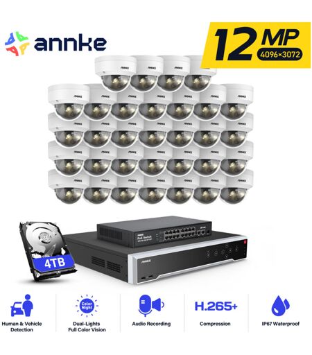 ANNKE 12MP poe Kit di Videosorveglianza 32CH nvr 32×Telecamere Intelligenti Doppia Luce Visione Notturna Avviso E-mail app/pc Remoto Telecamera di