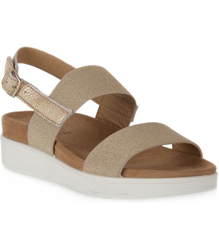 sandali confortevoli in morbida pelle con doppia fascia con plantare enval soft chiusura regolabile con velcro zeppa di 3 cm. made in italy. colore: platino. ...