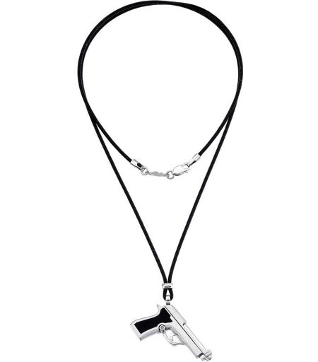 Collana Da Uomo Di Zancan Della Collezione Legittima Difesa. Gioiello In Argento 925. Collana Costituita Da 6. 80gr Di Argento 925, Kevlar E Dettagli In Smalro Nero Di Colore Nero. Gioiello Di Misura Standard 50 Cm E Soggetto A Forma Di Pistola. La ...