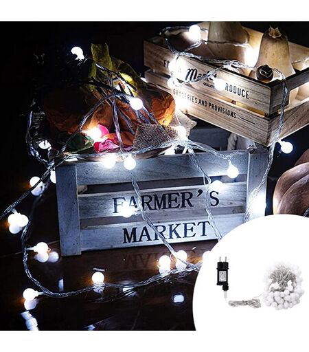 Wisdom Catena decorata con 160 Led a mini sfere luminose Bianco Freddo 16 metri con cavo trasparente