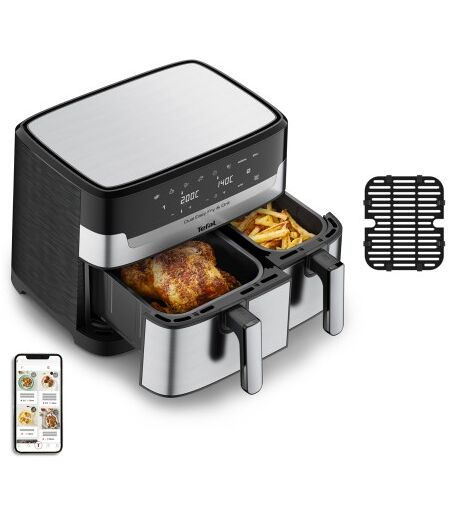 Tefal Dual Easy Fry & Grill EY905D, Friggitrice ad aria calda, 8,3 L, Doppia, Acciaio inox, Touch, Indipendente ...