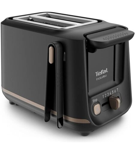 Tefal Includeo TT533811 Tostapane, 2 scomparti, pinza magnetica, tostapane con pulsanti grandi, 7 livelli di doratura, vassoio raccogli briciole
