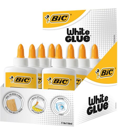 BIC White Glue - 8 colle da 118 ml ciascuna - per carta, cartone e legno