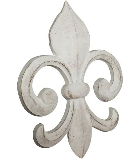 BISCOTTINI - Decoro a Forma di Giglio in Legno Finitura Bianco Anticato L63xPR6xH48 cm Made in Italy
