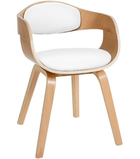 DÉCOSHOP26 Sedia da ufficio per sala da pranzo per visitatori dal design scandinavo in legno chiaro e seduta in pvc bianco 100001906