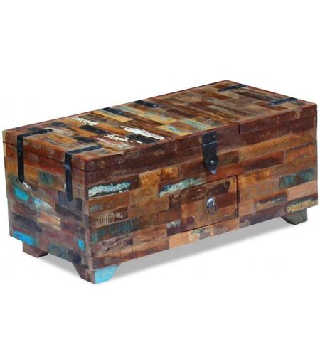 DÉCOSHOP26 Tavolino baule in legno massello di recupero con tre scomparti 80 x 40 x 35 cm DEC031229