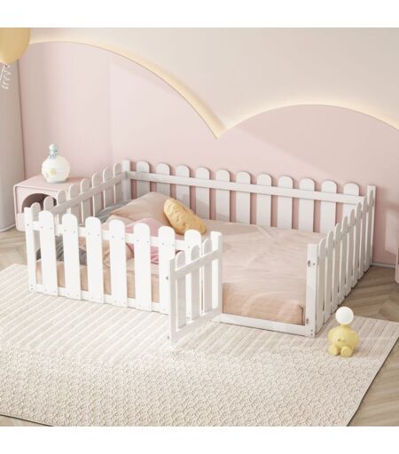 La forma generale e il design di questa culla sono semplici e pratici. La forma classica del letto dona alla tua casa un tocco di design unico. Una piccola porta che si apre e si chiude aggiunge interesse al letto e crea un luogo più sicuro per dormire. Questo telaio del letto a piede presenta una silhouette snella e un design elegante. Si adatta a tutti gli stili di arredamento e completa l'aspetto di qualsiasi stanza per bambini. Caratteristiche del prodotto: Letto a terra versatile - Non c'è una rete a doghe. Si tratta di un design a spazio aperto. Puoi usarlo come letto o come area giochi per bambini, zona lettura, ecc. Usa la tua immaginazione per creare il tuo spazio divertente. Struttura del letto robusta, durevole e sicura: L'altezza della recinzione raggiunge i 60 cm, proteggendo più efficacemente la sicurezza dei bambini. Realizzato in legno massello di pino di alta qualità, questa struttura del letto è durevole e può essere utilizzata per tutta la vita. Design divertente: ...