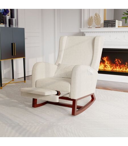 FORTUNA LAI Poltrona a Dondolo con Poggiapiedi Estraibile, Rocking Chair in Contin-Lin, con Tasche Laterali, Cuscino, 64x67x99cm Beige