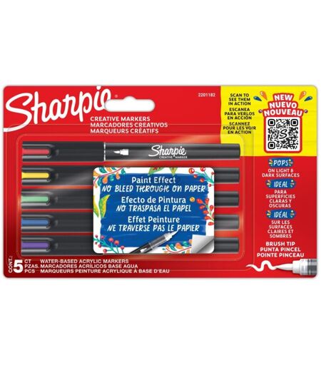 Sharpie Set di pennarelli pennarelli Creative ACRYLIC, punta a pennello - 5 pezzi