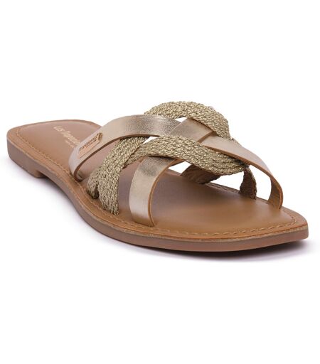 ciabattina per la donna moderna sandalo in pelle dorato che aggiunge un tocco di raffinatezza e stile offrendo al contempo un comodo supporto per i tuoi piedi. tomaia in pelle sottopiede in pelle e suola in gomma. colore: oro. ...