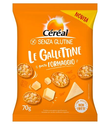 Céréal LE GALLETTINE Descrizione Prodotto senza glutine specificamente formulato per persone intolleranti al glutine. Ingredienti Cereali 88% (mais, riso), oli vegetali (olio di girasole alto oleico, olio di oliva), condimento aromatizzato al formaggio [siero di latte in polvere, lattosio, sale, aroma naturale (contiene latte), formaggio in polvere ( latte) 0,3%]; emulsionanti: lecitine ( soia). Senza glutine. Caratteristiche nutrizionali Valori medi per 100 g per porzione (circa 25 g) Energia 1.857 kJ/441 kcal 464 kJ/110 kcal Grassi di cui acidi grassi saturi 14 g 1,8 g 3,5 g 0,5 g Carboidrati di cui zuccheri 71 g 3,9 g 18 g 1,0 g Fibre 2,1 g 0,5 g Proteine 6,8 g 1,7 g Sale 1,4 g 0,35 g Conservazione Conservare a temperatura ambiente. Validità a confezionamento integro: 9 mesi. Formato Busta da 70 g. Cod. 222899 ...