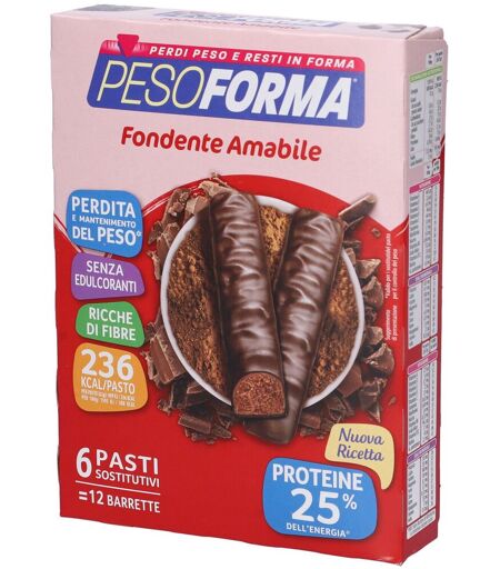 Nutrition & Sante' Italia Spa Pesoforma, Barrette Dark Fondente Amabile, 12 pezzi