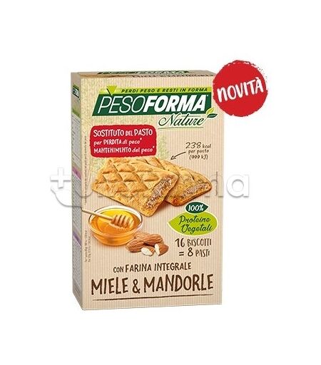 Pesoforma Nature Biscotti Integrali al Miele e Mandorle sono biscotti che apportano nutrienti bilanciati per sostituire un pasto, ideali per chi segue una dieta per la perdita di peso o per il mantenimento del peso. ...