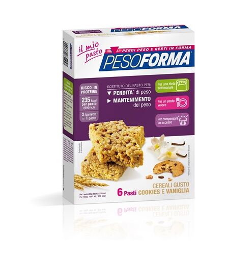 Pesoforma Pasto Sostitutivo Cereali Gusto Cookies e Vaniglia 6 Barrette