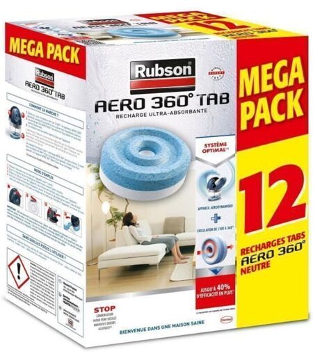 Soluzione anti-umidità performante Il RUBSON PROMO MEGA PACK offre 12 ricariche Aero 360 Neutro per eliminare efficacemente l'eccesso di umidità in stanze fino a 20 m². Grazie alla sua tecnologia esclusiva AERO 360° e al suo filtro a carbone attivo, assorbe l'umidità neutralizzando le odori sgradevoli. Tecnologia innovativa 360° Il suo sistema di circolazione dell'aria ottimizzato consente un assorbimento uniforme in tutte le direzioni. La ricarica Tab si scioglie progressivamente per un'azione continua, mentre il serbatoio di raccolta trasparente facilita il monitoraggio del livello di riempimento. Uso semplificato Il pacchetto economico include 12 ricariche compatibili con l'assorbitore RUBSON Aero 360°. Installazione rapida senza attrezzi: inserisci la tavoletta con il lato blu rivolto verso il basso e poi richiudi l'apparecchio. Svuotamento sicuro attraverso il tappo dedicato dopo la completa dissoluzione. Consigli per l'ottimizzazione Per una massima efficacia, posiziona ...