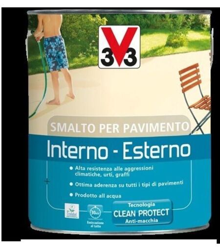 Smalto per pavimento Interno e Esterno V33¯Lo smalto per pavimento Interno e Esterno V33 è uno smalto all’acqua a base di resina acrilica ideale per la protezione, il rinnovo e la decorazione dei pavimenti sia interni che esterni. Il film protettivo, che si crea sulla superficie, rende questo prodotto estremamente impermeabile, prevenendo perciò la formazione di muffe, e super resistente alle aggressioni climatiche e ai raggi UV. ...