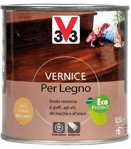 VERNICE ALL'ACQUA IDEALE PER DECORAZIONE E PROTEZIONE DEL LEGNO INTERNO COME MOBILI E PORTE COLORE CERA NOCE SCURO 0,5 LT - V33