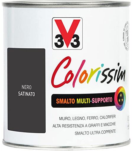 SMALTO MULTISUPPORTO COLORISSIM DONA MODERNITA' SU OGNI SUPPORTO, MATERIALE O SUPERFICIE COLORE NERO 0,50 LT - V33
