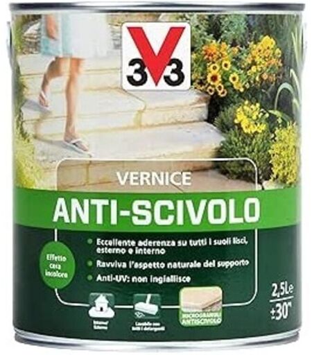 Grazie alla sua particolare formulazione arricchita da micro-granuli sintetici, la Vernice Anti-scivolo crea una finissima pellicola incolore effetto cera e che non ingiallisce.¯¯Super lavabile e priva di odori, la vernice Anti-Scivolo ravviva l’aspetto naturale delle superfici esterne ed interne. ...
