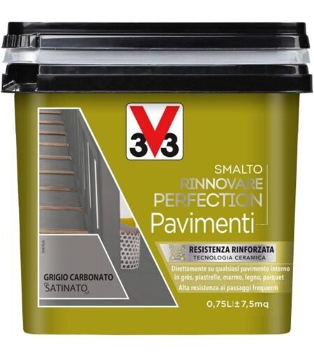 V33 - SMALTO RINNOVARE PERFECTION PAVIMENTI 750ML GRIGIO CARBONATO SATINATO Applicazione diretta, senza utilizzo di un fondo Estrema aderenza e tenuta perfetta sui supporti (legno grezzo, verniciato e stratificato, grès, piastrelle smaltate, granito, marmo) Alto potere coprente: copertura minima garantita al 98%, per un risultato uniforme e senza tracce Resiste ai lavaggi frequenti ...