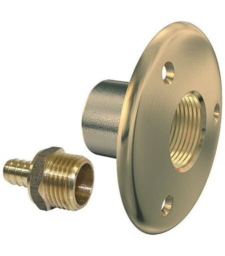 Watts 6505 1/2 “F D12mm raccordo a pressare a parete passante Consente di collegare un rubinetto da giardino a qualsiasi superficie senza che siano visibili tubi o raccordi. Esteticamente gradevole, la staffa a parete nasconde il foro di ingresso del tubo. Tre viti fissano la staffa in posizione. Le tubature sono completamente protette dai raggi UV. Staffa a parete rimovibile adatta a tutti i tipi di raccordi PER: - raccordo a vite, - raccordo slip-on - raccordi a pressione, - raccordi istantanei su rame (giunto Gripp). Fornito con viti + tasselli di fissaggio e anello per il collegamento a pressione. Caratteristiche tecniche: Finitura: ottone grezzo Diametro: Ø 12 mm attacco a pressione / uscita 1/2” F ...