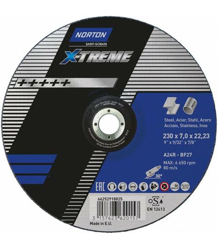 Disco di sgrossatura X-TREME • Corindone • Prestazioni di rimozione rapide ed elevate • Sistema di rilegatura con elevate forze di tenuta del grano • Per la sgrossatura di tipi di acciaio duro e leghe ...