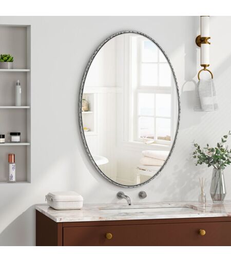 REDOM Specchio ovale retrò in ferro battuto effetto antico da appendere alla parete, adatto per bagno, camera da letto, soggiorno (argento)
