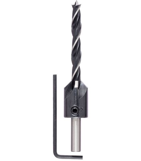 La punta a spirale in legno con conicatore perfora, svasatura e sbava in modo efficiente in un solo passaggio nel legno. Montata su una punta a spirale in legno, tutte e tre le operazioni possono essere eseguite contemporaneamente. Il conicatore è adatto a legno duro e morbido, a pannelli di fibra laminati e non laminati, nonché a compensato. Questa punta multifunzione in acciaio per utensili ha un angolo di svasatura di 90 gradi, cinque taglienti e può essere utilizzata anche come fermavolata. Il conicatore include una chiave a brugola, una punta a spirale in legno e un conicatore a cuneo montato sul supporto di inserimento. ...