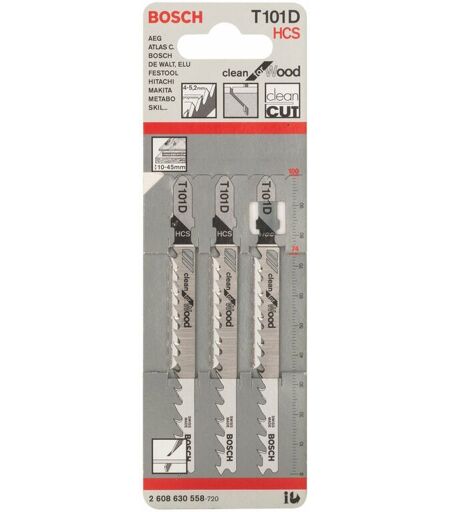 Bosch Professional BOS-2608630558 2608630558-Hoja Sierra de calar t 101 d: Clean Wood: 3 uds, 0 w, 0 v, Nero -