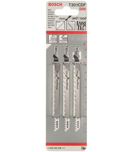 Bosch Professional 3 x Lame per seghetto alternativo T 301 CDF Clean for Hard Wood (per Legno duro, straight cut, accessorio Seghetto alternativo)