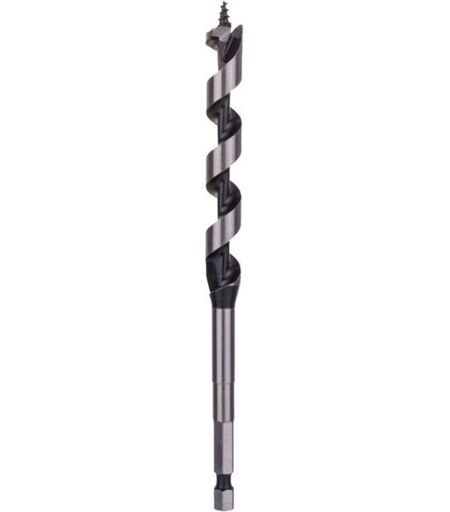 Perforazione di precisione nel legno! La punta della vite con avanzamento automatico trascina il trapano attraverso il legno. Hai bisogno di un affidabile trapano a spirale per legno che ti permetta di praticare fori precisi e più velocemente nel legno? Allora il PRO Trapano a spirale per legno è la scelta giusta. L'abbiamo progettato in modo che i fori profondi siano esattamente dove devono essere. Il PRO Trapano a spirale per legno è una buona scelta per falegnami e carpentieri che necessitano di un accessorio rapido e preciso per praticare fori profondi in legno duro e tenero. Il trapano è dotato di una punta a vite robusta, che permette di forare esattamente dove ne hai bisogno. La punta trascina il trapano a spirale nel pezzo di legno, facilitandoti il lavoro di foratura. La sua principale lama di taglio è affilata. Grazie al design speciale della scanalatura a spirale, le trucioli vengono rimossi efficacemente, portando a fori precisi e di forma stabile. Lunghezza totale 160 mm ...