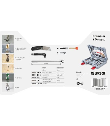 Bosch - 76 Pezzi Set Bit/Punte Premium X-Line , per Calcestruzzo, Punte per Piastrelle, Portabit Universale, Fermo di Profondità, Avvitatore a