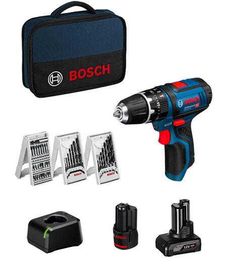 Bosch Trapano avvitatore a percussione Professional gsb 12V-15 + 1 batteria 2,0Ah + 1 batteria 4,0Ah - 06019B690G