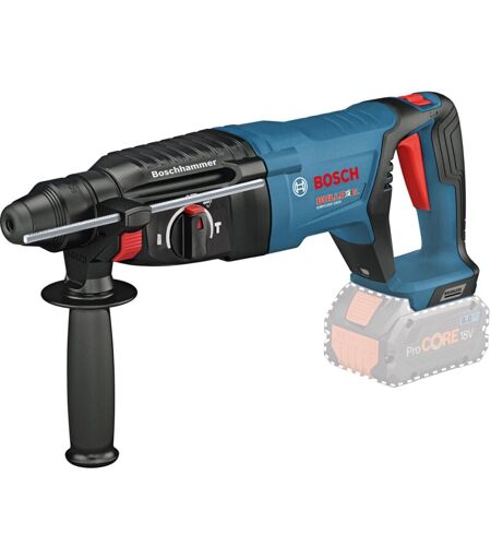 Caratteristiche del prodotto: Martello rotante a batteria con SDS plus GBH 18V-26 D.Martello rotante universale con impugnatura a D per applicazioni di foratura e scalpellatura verticale nel segmento SDS plus a batteria.2,5 joule di energia d'impatto e motore brushless: la potenza a batteria corrisponde a quella dei martelli a filo Bosch.Il primo martello perforatore a batteria con impugnatura a D e KickBack Control per una gestione flessibile e una maggiore protezione dell'utente.Comoda maneggevolezza grazie all'interruttore di grandi dimensioni e all'impugnatura a D in combinazione con la luminosa luce LED per scalpellare senza fatica. Dati tecnici: Energia d'impatto, max. 2,5 JNumero di colpi a velocità nominale, da 0 bpmNumero di colpi a velocità nominale, fino a 4.350 bpmNumero di colpi a velocità nominale 0 - 4.350 bpmVelocità nominale, da 0 min-1Velocità nominale, fino a 980 min-1Velocità nominale 0 - 980 min-1Peso senza batteria 2,6 kgPortautensili SDS plusØ di foratura nel ...