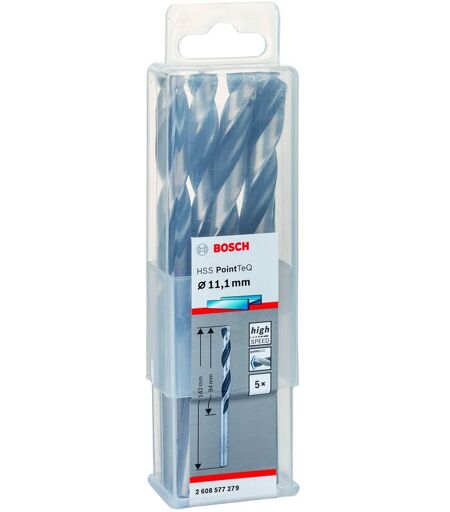 Bosch - Accessories 2608577279 hss PointTeQ (11,1 x 94 x 142 mm) - Set da 5 Pezzi di Punte Elicoidali per Trapano per Metallo, Acciaio, Fusione o