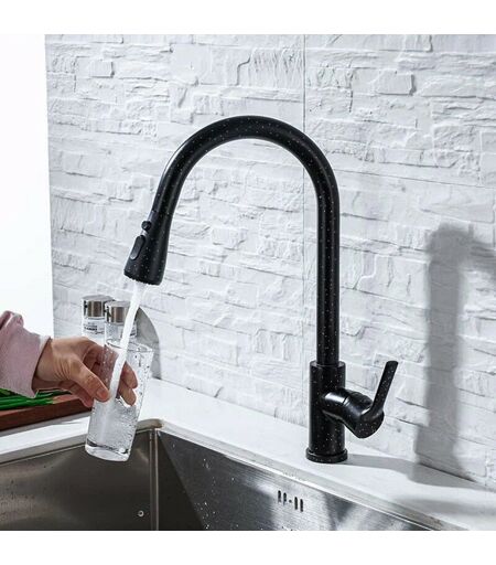 ROSMMEL Rubinetto cucina, rimovibile ed estensibile, linee curve ruotabili di 360º nero con punti