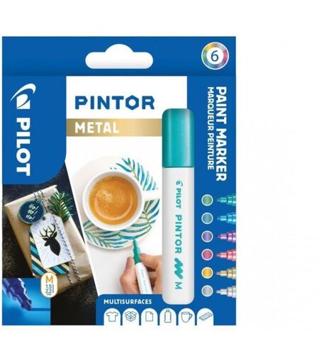 Pilot Pintor. Colore penna: Oro, Blu metallizzato, Verde metallizato, Rosa metallizzato, Viola metallico, Argento, Colore del prodotto: Multicolore, Numero di colori: 6 colori. Quantità per pacco: 6 pz, Tipo di imballo: Scatola ...