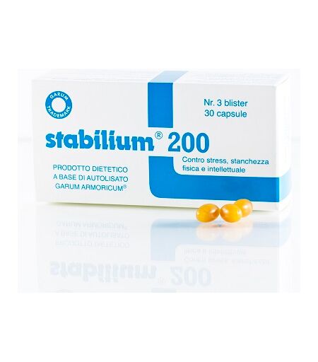 stabilium 200 - Integratore alimentare utile nel favorire la resistenza nei confronti dello stress, aiutal'organismo in caso di eccessiva tensione, spossatezza o fatica intellettuale. Prodotto dietetico a base di un autolisato di origine marina, denominato GarumArmoricum. L'autolisi è un processo n… ...