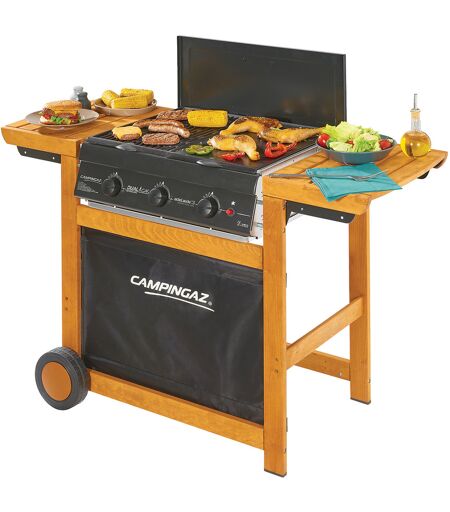 Adelaide DualGas è il barbecue di Campingaz che crea la perfetta combinazione tra potenza ed eleganza . I dettagli in legno abbinati agli elementi in acciaio verniciato rendono questo modello perfetto per chi in un barbecue ricerca design e stile tanto quanto ottime prestazioni di cottura; la doppia superficie di cottura con griglia e piastra permette di soddisfare tutti i tipi di appetito ed è riscaldata in modo uniforme e prolungato grazie ai 3 bruciatori in ghisa con potenza di 14.000 W; la superficie di cottura con dimensioni 46x60 cm permette di preparare succulente grigliate fino a 12 persone; con l'accensione Piezo è facilissimo usarlo: basta premere il componente di accensione e girare la manopola per far partire i fornelli; il barbecue è anche pratico da spostare e posizionare grazie al sistema con 2 ruote che lo trasforma in un carrello in legno. Altezza di cottura 83 cm; doppia alimentazione: metano e GPL ; il frontale in tessuto è lavabile con panno umido. ...