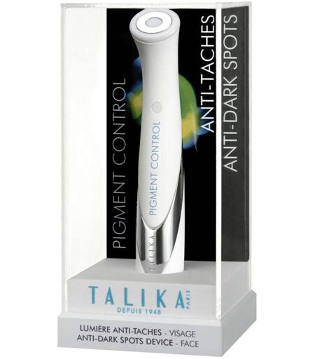 Talika Pigment Control Dispositivo Anti-Macchie VisoTalika Pigment Control Anti-Dark Spots Device Face � il risultato di una ricerca dell'industria aerospaziale e uno strumento cosmetico sviluppato per ridurre visibilmente le macchie brune su viso, mani e d�collet�.Il dispositivo brevettato Pigment Control combatte localmente le macchie pigmentarie (macchie brune). Combina la propagazione della lunghezza d'onda di 525 nm per colpire con precisione le macchie, ma anche la ionoterapia per aumentare l'efficacia delle creme schiarenti.Dopo 30 giorni di utilizzo, la pigmentazione si riduce del +44% (-27% in media)*.Il dispositivo viene fornito con una batteria AA. ...