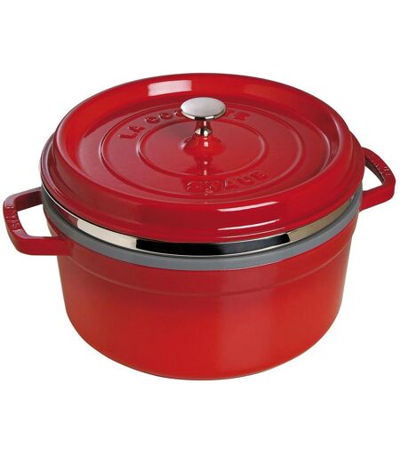 Staub Casseruola tonda in ghisa per induzione colore rosso con maniglie, coperchio e cestello vapore, diam. 26cm