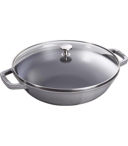 Staub Wok in ghisa per induzione colore grigio con maniglie e coperchio in vetro , diam. 30cm