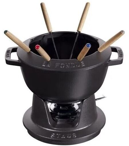 Staub - Service à Fondue en Fonte, avec 6 Fourchettes à Fondue, Pour Fondue Savoyarde, Bourguignonne et au Chocolat, Ø 20 cm, Noir Mat