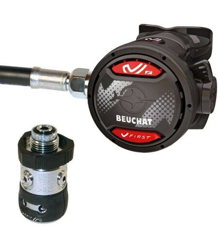 Caratteristiche:- Progettato e sviluppato in collaborazione con i centri di immersione- Manutenzione rapida e semplice: estremamente semplice da smontare, rimontare e mantenere- Affidabilità comprovata- Primo stadio con pistone standard più 4 porte MP e 1 porta HP- Secondo stadio semplice con valvola a valle non compensata- Controllo Venturi- Custodia flessibile con grande pulsante di spurgo- Controllato e regolato individualmente su un banco di prova iperbarico specializzatoSpecifiche:- Uso: Aria- 1° stadio: Pistone- Porte LP: 4- Porte HP: 1- Collegamento: Yoke/DIN 230B- Controllo Venturi: Sì- Peso DIN (gr): 757- Peso Yoke (gr): 932- Standard: EN 250-2014 ...