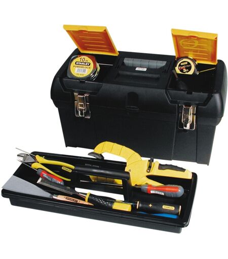 La cassetta portautensili Stanley Millenium 24" pollici 1-92-067 è dotato di un ripiano estraibile e di 2 organizer integrati nel coperchio. Sulla cassetta portautensili è presente un occhiello per un lucchetto in modo da poter chiudere la cassetta in modo sicuro, se lo desideri. Le cerniere in metallo e l`impugnatura comfort completano la cassetta portautensili. ...
