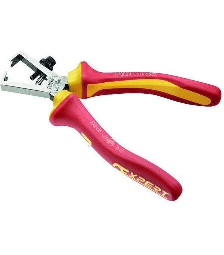 Dettagli : Pinze isolate a 1000 V. Perfetto per spelare fili multifilari e monofilari da 0,75 a 6 mm². Impugnatura ergonomica per un maggiore comfort.Lunghezza 160 mmNorme IEC 60900 - Prodotto spedito dalla nostra piattaforma di Rodez, Francia - prodotto conforme agli standard francesi ...