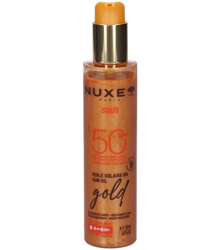 Nuxe SUN Olio Solare Dorato Alta Protezione Spf50 Questo Olio solare Oro Spf50 viso e corpo assicura una protezione a ampio spettro contro gli Uva/Uvb e la luce blu grazie a un sistema filtrante brevettato esclusivo. Offre una protezione cellulare anti-età rinforzata grazie alla sua efficacia raddoppiata sugli Uva. Resistente all’acqua e non comedogenica, è adatta a tutti i tipi di pelle. La sua texture illuminante con madreperle 100% di origine naturale idrata e penetra rapidamente senza ungere, per esaltare tutte le carnagioni con un incredibile finish oro scintillante. La pelle è esaltata, idratata e luminosa per il 100% delle utilizzatrici, l’abbronzatura è duratura per il 100% di loro. Il suo profumo d’evasione ammalia i sensi con le sue note di arancio dolce, di fiore di tiaré e di vaniglia, un vero e proprio invito a godersi l’estate. Modo d'uso: Agitare prima dell’uso. Applica generosamente il trattamento prima di esporti al sole. Metti il prodotto sulle mani prima di applicarlo sul viso evitando il contorno occhi. Sul corpo, applicalo direttamente prima di stenderlo accuratamente. Ripeti frequentemente l'applicazione; soprattutto dopo aver nuotato o esserti asciugata. Se non applichi una quantità sufficiente di prodotto, il livello di protezione solare sarà considerevolmente ridotto. L'eccessiva esposizione al sole è pericolosa. Un prodotto solare non garantisce il 100% di protezione. Evitare di esporsi al sole nelle ore centrali della giornata. Ingredienti: Coco-caprylate/caprate, C12-15 Alkyl Benzoate, Dibutyl Adipate, Diisopropyl Sebacate, Diethylamino Hydroxybenzoyl Hexyl Benzoate, Bis-ethylhexyloxyphenol Methoxyphenyl Triazine, Ethylhexyl Triazone, Hydrogenated Castor Oil/sebacic Acid Copolymer, Mica, Dextrin Myristate, Isopropyl Lauroyl Sarcosinate, Parfum/fragrance, Ci 77891/titanium Dioxide, Helianthus Annuus (Sunflower) Seed Oil, Ci 77491/iron Oxides, Ethyl Ferulate, Rosmarinus Officinalis (Rosemary) Leaf Extract, Tocopherol, Tetramethyl Acetyloctahydronaphthalenes, Citrus Aurantium Peel Oil, Linalyl Acetate, Limonene, Linalool, Citronellol, Dimethyl Phenethyl Acetate, Geraniol, Pelargonium Graveolens Flower Oil, Isoeugenyl Acetate [n5603/a]. ...